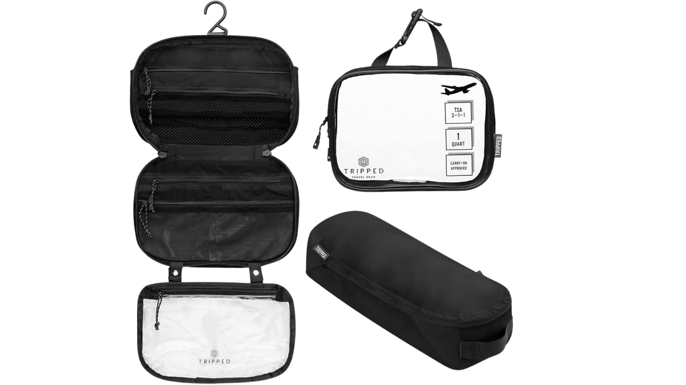 My current favorite setup is the Tripped toiletry bag, simply because it’s practical, flexible, and works perfectly for carry-on travel.
